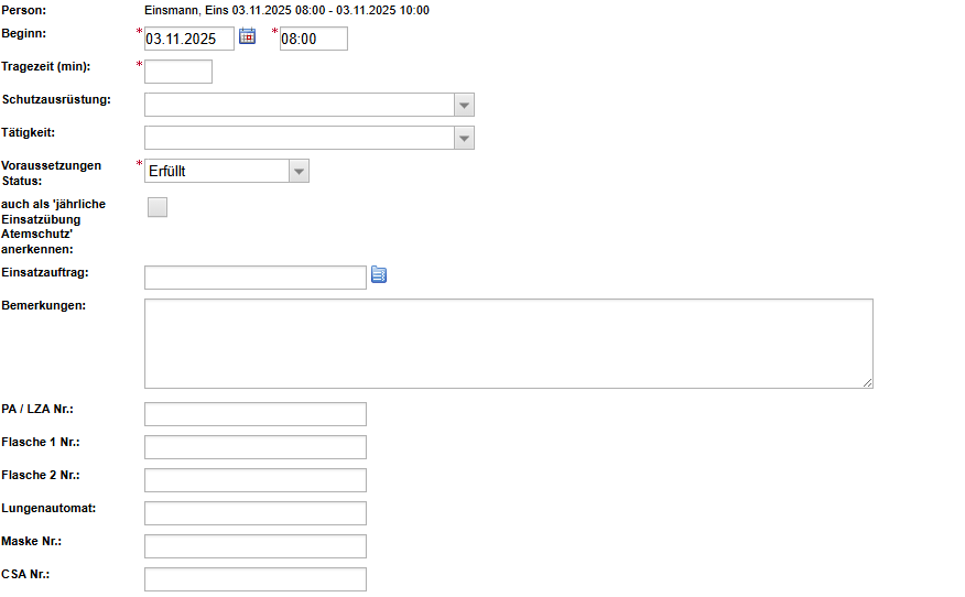 Anpassungen der Erfassungsmaske für Atemschutztragezeiten