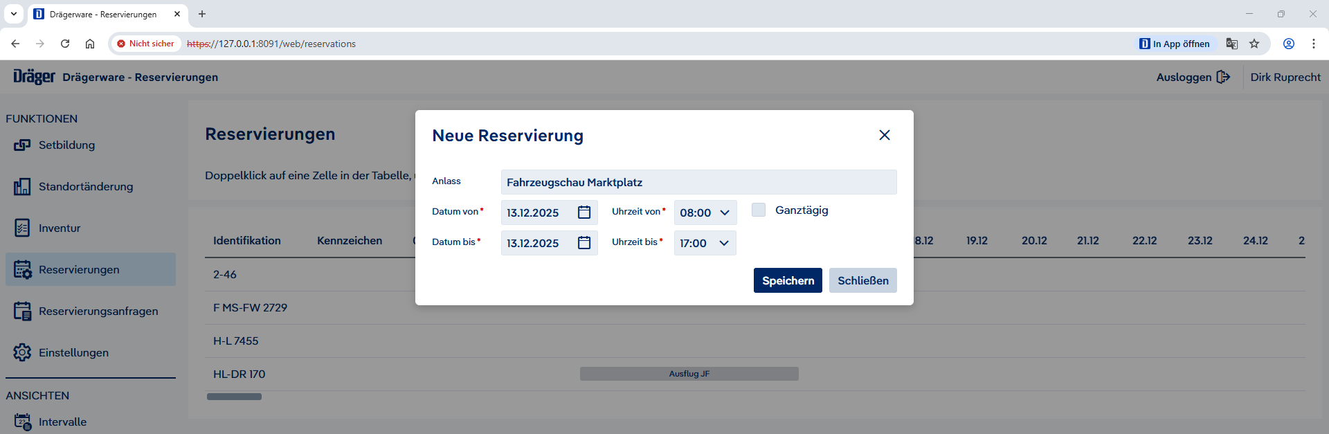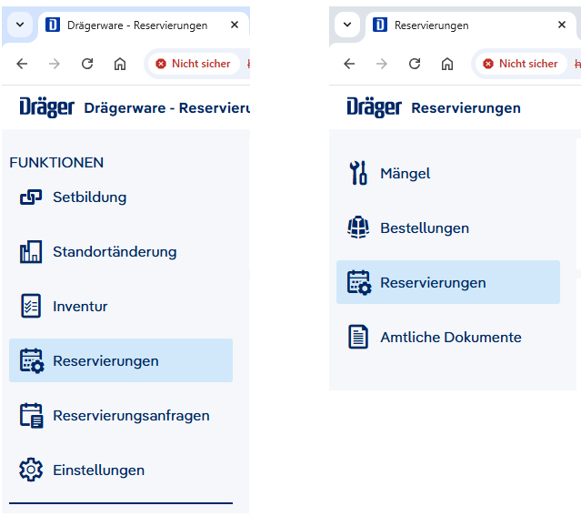 Eine Reservierung von Geräten kann entweder von Werkstattbenutzern über Drägerware.Web oder auch von Personen aus der Personalverwaltung über Meine Drägerware durchgeführt werden.