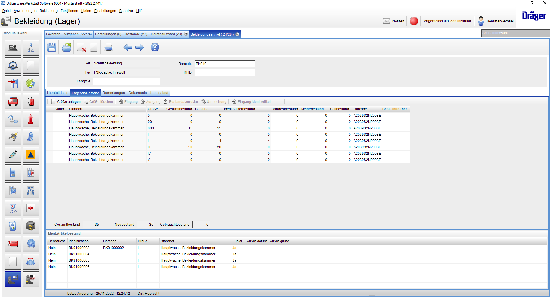 Bei manuellem Anlegen von einzelidentifizierten Kleidungsstücken ist keine Größenzuordnung möglich. Sie kann über diese Funktion nachträglich erfolgen.